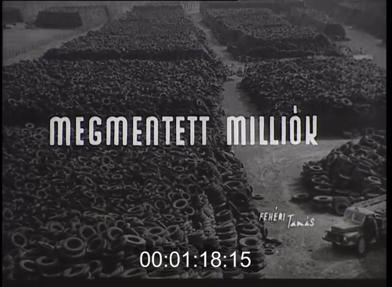 Tizenhat holdnyi terület, rajta hatvanezer tonna agyonkoptatott gumiabroncs. Ebből a hosszú idő alatt összegyűlt hulladéktömegből évi 40 millió forintnyi új értéket varázsolnak az Országos Gumiipari Vállalat váci üzemében. A Pálma Gumigyár kollektívája világviszonylatban is feltűnést keltő eljárást talált fel a hulladékabroncsok hasznosítására. Először a drótbetétet távolítják el, majd az abroncsokat feldarabolják, szeletekre vágják. A magyar gyártmányú gépsor a továbbiakban úgy őrli és tépi a gumiabroncs-szeleteket, hogy tisztán mechanikai úton az alak- és súlykülönbség segítségével szétválik a textil és a gumi. A gép egyik végterméke a gumitól mentes textil, amelyből az építőipar részére értékes hő- és hangszigetelő anyagot készítenek. A már világhírűvé vált gép másik végterméke a gumiőrlet, amelyet nagy részben útépítési alapanyagként használnak fel. Az új nyersanyag egy részét viszont már helyben feldolgozzák. Először formába helyezik, majd vulkanizálják. Így gumilapokat nyernek, amelyekre felülről famozaikot ragasztanak. Ez az új, gumialátéttel összedolgozott parketta erősen csökkenti a lépészajok keletkezését és áthallását egyik lakásból a másikba, így bizonyára nagy sikere lesz mindenütt.