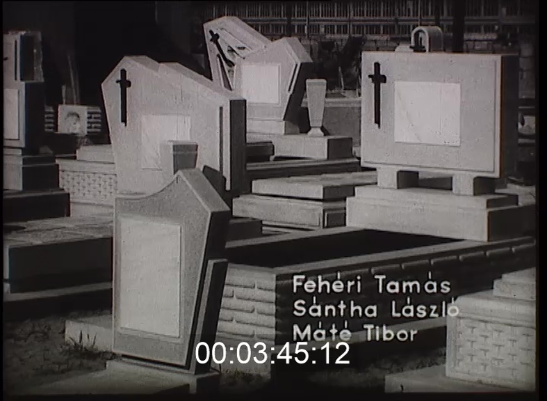 " "No de mit csináljanak önnel?" "Majd a föld alá tesznek." No, de nincsen föld, ez a probléma!" "Dehogynem annyi van a föld, hogy ki kell használni." [FTI munkatársa]: "A főváros több, mint kétmillió lakosának a temetkezési igényeinek kiszolgálása nem kevés feladatot ró az intézetre, és az itt dolgozó mintegy ezerkétszáz ember napi 100-110 temetést kénytelen megoldani az elhunytak elhelyezésének két fő formájában, hamvasztásos és földbetemetés formájában. Meglepődéssel vehetjük észre, hogyha a főváros zöld területét nézzük, mintegy 1600 hektár az a zöld terület, amely az életet frissíti és ebből mintegy egyharmad rész az, amelyik temetővel van telítve. A jelenlegi temetési formáink, módszereink nem adnak rá módot és a fővárosnak a behatárolt területe sem, hogy újabb területbővítésekkel a földbetemetések száma növekedhessen. Ebből eredően olyan gondjaink és problémáink vannak, hogyan lehetne szűkebb területen kulturáltabb, jobb, újabb formákat keresve, a ma szellemének jobban megfelelő temetkezési formákat kialakítani." [Ortutay Tamás tervezőművész]: "Főiskolás korom óta foglalkoztat a temetőkultúra. A nagyvárosi temetőinkben elszaporodóban van egy nagyméretű, műkőből, vagy igazi kőből készített, hatalmas méretű építményeknek a rendszere. Én a terveimben és törekvéseimben egy teljesen ellentétes gondolatot próbálok megvalósítani, ahol maguk az emlékjelek minél kisebb méretűek és az amúgy is szűkülő zöldterületet pedig szabadon hagyjuk, és inkább az növekedjen a műkő rovására. Először kisebb méretű összerakható sírjeleket terveztem, amelyek alkalmasak urna befogadására. Az eredmény nem elégített ki, így ezeket a jeleket egy nagyméretű spirális építménnyel foglaltam össze. Ez a spirális építmény az élet természetes rendje szerint növekszik, mint a csigaház. Megerősített ebben jó néhány többezer éves, temetési célokat szolgáló építmény, amely spirális formájával az élet folyamatosságát fejezte ki. Közvéleménykutatás céljából létrehoztunk egy kisméretű földspirált, ahol a temető látogatók vázlatos képet kaptak a tervről. Magam is kíváncsi vagyok, hogy itt Budapesten, ahol a helyhiány és a borsos árak miatt egyre nehezebb nagyméretű betonsírokat létrehozni, mennyi idő alatt válik valósággá ez a terv, ahol dús növényzet és szinte a természetes környezetbe süllyesztett sírjelek alkotják a temetőt." [Hangmontázs szinkron]: "Nem úgy, hogy amik kinn vannak, elől urnák föl vannak helyezve a falra, hanem így lesznek az urnák lehelyezve. Szal' ez lesz a lehelyezés." "Igen, és így kisebb helyet foglal el." "Nem kell építmény, ugye?" Lélekben az ember egyforma, legyen eggyenlő!"