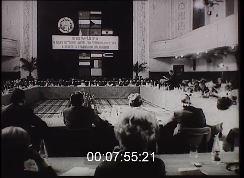 Debrecen városa maga az élő történelem. Színhelye volt a 48-as magyar szabadságharc nagy eseményeinek és 1945-ben itt alakult meg a felszabadult Magyarország első, ideiglenes kormánya. Méltó környezete tehát annak a nemzetközi békemozgalmi találkozónak, amelyre tizenegy ország küldöttei jöttek el. A tanácskozás bevezető előadását Berend T. Iván akadémikus mondotta. [Berend T. Iván]: "Vitaindító előadásomban tulajdonképpen azokat a folyamatokat próbáltam összegezni, amellyek a XX. században, az elmúlt hat évtizedben kibontakoztak és átalakították világunkat. Ezen belül mindenekelőtt azt a társadalmi-politikai folyamatot, de egyben gazdasági folyamatot hangsúlyoztam, ami a szocializmus térnyerése, térhódítása formájában fogalmazható meg és általában a világban végbemenő nagy változások olyan új egyensúly állapotokat, politikai, társadalmi és katonai erőegyensúlyt teremtettek, ami a világhatalmi erőviszonyokat és a béke lehetőségeit is teljesen új körülmények közé helyezte. Ez tulajdonképpen a tárgya a kétnapos vitának és erről fejtik ki álláspontjukat a hozzászólók." A vita a Nagy Októberi Forradalom 60. évfordulóján a békemozgalom mai lehetőségeit vizsgálta annak a békedekrétumnak fényében, amely 1917-ben, a forradalom másnapján az ifjú szovjet állam első szava volt a világ népeihez. A béketalálkozó résztvevőit Debrecen fiatal művészei köszöntötték.