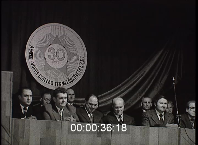 Harminc éves termelőszövetkezetét ünnepelte a Dráva-parti Barcs község. A magyar szövetkezeti mozgalom egyik nagy eredményeket elért elsőszülöttjének nem kis része van abban, hogy a vidékies külsejű régi Barcs eltűnőben van, a várossá válás felé halad. Az ünnepi közgyűlésen ennek is szólt a taps. No meg azoknak, akik most a diszvendégek sorában az elnökségi asztal mellett foglaltak helyet, azoknak a valahai nincsteleneknek, akik 30 év alatt küzdelemmel, munkával többszörös milliomossá tették a közöst: a Vörös Csillag alapító tagjainak. Közöttük az alapító elnöknek, Losonczi Pálnak, aki a Népköztársaság Elnöki Tanácsi elnöki íróasztala mellől ma is gyakran látogat haza. [Losonczi Pál, tsz-tagok szinkron]: - Szép kukorica nőtt a puszta helyén. Az biztos. - Hol van az a tábla, ahol mink elvetettük az első tíz mázsa kukoricát