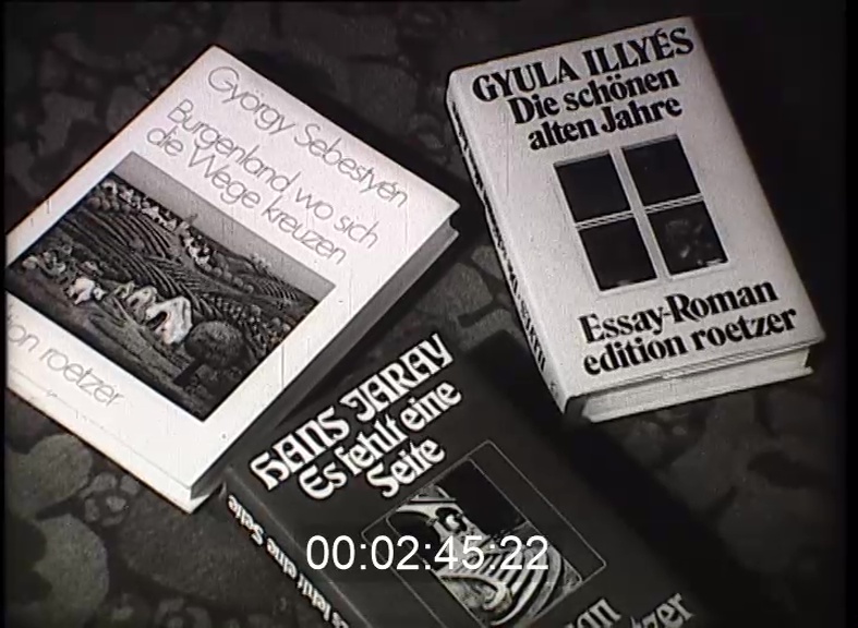 Vízum nélkül a határon át, hirdeti a Roetzer Kiadó gondozásában megjelenő Pannónia vezércikke is. A folyóirat s az örvendetesen szaporodó német nyelvű fordítások a kölcsönös jobb megismerést szolgálják és szinte jelképes, hogy a kiadó Eisenstadtban, a határ szomszédságában, a választott feladat életközelségében működik. Egymás kulturális értékeinek közreadásáról, a sokoldalú kapcsolatokról beszél Roetzer úr, a kiadó igazgatója és Sebestyén György, irodalmi szerkesztő. [Sebestyén György]: "Az Edition Roezter örül annak, hogy a magyarokkal való együttműködés egyre intenzívebb. A kiadványokom is látszik ez: a Pannóniát adjuk ki, aztán Illyés: Khárón ladikján-t is, meg más magyar könyveket, és most folynak a tárgyalások arról, hogy a bécsi magyar sajtóirodával az eddiginél még intenzívebb legyen az együttműködés." És a színhely immár a bécsi Teinfalt Strasse. A magyar sajtóiroda igyekszik minél jobban eleget tenni fontos hivatásának. Ellátja az osztrák hírközlő szerveket a hazánk életéről szóló széles körű tájékoztatással, segítségére van a kutatóknak, nyitva áll bárki elött, aki érdeklődik hazánk múltja és jelene iránt. Természetesen tevékeny szerepet vállalt a bécsi Collegium Hungaricum Krúdy-estjének előkészítésében is. Az ünnepi esten a nagy író lánya, Krúdy Zsuzsa vázolta fel apja emberi és írói portréját, majd neves osztrák művészek olvastak fel részleteket a Vörös postakocsiból és az elmaradhatatlan Szinbád kalandjaiból. Krúdy Gyula alakjai, ízei, színei és históriája igy elevenedtek meg német nyelven is. [részletek Krúdy-regényekből osztrák előadók tolmácsolásában] dr. Randé Jenő nagykövet nyitotta meg a Krúdy-grafikákat bemutató kiállítást is, amelynek a Collegium Hungaricum adott otthont. Beszédében hangsúlyozta, hogy az örvendetesen fejlődő és bővülő politikai és gazdasági kapcsolatok mellett jelentős szerepe van a közös kulturális örökség kutatásának, a közelmúlt és a jelenkor művészetével való ismerkedésnek. Ezek a kapcsolatok - Helsinki jegyében - gazdag tartalmat kapnak a hétköznapokon: kiállítás Bécsben és kiállítás Budapesten. Rónai Rudolf, a Kultúrkapcsolatok Intézetének elnöke és dr. Johann Josef Dengler osztrák nagykövet bevezető szavaival nyílt meg Hundertwassernak, a kortárs osztrák képzőművészet egyik izgalmas és sokat vitatott alakjának kiállítása a Műcsarnokban. Az értő kritikusok szerint meleg színekkel dolgozó művész a szimbolizmussal elegy bécsi szecesszió legkiválóbb művelője. A kiállítások látogatói, a vendégkönyvek tanúságai alapján, nincsenek egységes véleményen, de nagy érdeklődéssel szemlélik a művész sajátos megjelenítési formáit.