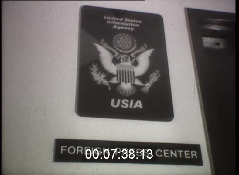 És most egy jelentés az óceán túloldaláról. [Kulcsár István szinkron]: New York szívében a Szent Patrícius székesegyház és a Rockefeller nevű felhőkarcoló együttes szomszédságában az 50. utca 18. szám alatt működik egy olyan intézmény, amelyet minden itt járó külföldi tudósító fölkeres. [Nicholas King igazgató, Külföldi Sajtóközpont, New York, szinkron]: Olyan sajtóintézmény ez, melynek az a feladata, hogy segítse minden New Yorkban működő külföldi újságírónak. Mintegy ötszáz külföldi tudósító dolgozik itt állandóan s évente további néhányszázan ugyancsak megfordulnak városunkban. Munkatársi gárdánk kicsiny, de igen tapasztalt és hozzáértő. A kis létszámnak az az előnye, hogy megpróbálnak közelebbi kapcsolatot fenntartani valamennyi itt működő tudósitóval. Úgy érezzük, hogy ez a munkánk hasznos, segíti az Egyesült Államok megismerését és megértését. [Kulcsár István szinkron]: Nyilvánvaló, hogy a sajtóközpont propaganda szerv, az Egyesült Államok azért tartja fenn, hogy a különféle rádiókat, folyóiratokat, kulturális intézményeket, hogy igyekezzen meggyőzni a világot Amerika felsőbbrendűségéről. Viszont el kell ismerni nem szűklátókörűen teszik ezt. Az idelátogató tudósítók valóban minden szükséges segítséget megkapnak. A hírügynökségek telexgépeinek papírtekercsein sorra érkeznek a jelentések Amerika és a világ eseményeiről. Az újságíróknak módjukban van ezeket, meg a sajtóértekezleteken hallottakat innen a központból telefonon továbbítani szerkesztőségüknek. A rádiótudósítóknak külön kis stúdió áll rendelkezésükre. A propagandakiadásokkal a deficites költségvetés sem takarékoskodik. A hírtovábbítás feltételeivel tehát nincsen baj, de az Amerikából keltezett hírekkel annál több gondja van a világnak.