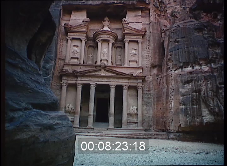 És most látogassunk kameránkkal még délebbre, Szíriába. Az Ammántól háromszáz kilométerre fekvő sziklavárost, Petrát csak a múlt század elején fedezték fel, pedig időszámításunk előtt hatszáz évvel épült. Gyalog vagy lovon lehet megközelíteni a helyi beduinok segítségével, egy két km hosszú, alig 56 méter széles sziklába vájt ösvényen. A titokzatos Nabateu-civilizáció egykori fővárosának neve sziklát jelent. S ez nem véletlen. A lakóhelyeket, templomokat sziklába vájták, s volt idő, amikor harmincezer ember élt e kövek között. A város három fontos kereskedelmi útvonal kereszteződésében épült. Lakói Indiából fűszereket, Arábiából aromákat vásároltak és ezeket adták el Gházában és Alexandriában. Petrát egy földrengés pusztította el illetve zárta el a külvilágtól. Az érintetlen romok ezért maradhattak meg természetes szépségükben, közel 2000 éven át.