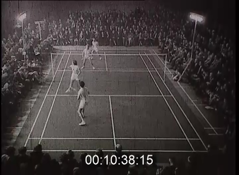 Badmintonnak nevezik ezt a röplabdához, de a teniszhez is hasonló, magas hálóval kettéosztott játékot. A hollandiai Haarlemben bemutató vegyespárost játszottak. A maláj Choong és a dán Hansen a Carpenter-Findlay (?) angol kettős ellen mérkőzött. A játék lényege: a labda nem érhet földet. Nos, hogy tetszik az új játék? Egy kis ízelítő a profi bokszból. A nyugatnémet Gerhard Hecht a trinidadi Pompey elleni győzelmével óhajt bekerülni a világbajnoki elődöntőbe. Az első menetben Hecht állja a szépnevű néger rohamait. De mindenkit érhet baleset. Ez az ütés Hechtet közeli kapcsolatba hozza a szorító rideg padlójával. Kiütéssel győz Pompey és Hecht kezdhet mindent elölről. Jó lesz vigyázni, Papp Laci! Ausztria. Kitzbühel közelében nemzetközi síversenyt rendeztek. Anderl Molterer, az egykori világbajnok a műlesiklásban nagyot esett, s ezzel a győzelemnek is búcsút mondott. Itt jön a háromszoros olimpiai bajnok, az osztrák Toni Sailer. Nyolcvanas tempóban aprítja a kapukat. A műlesiklás fortélyait ezen a versenyen az ugyancsak osztrák Josl Rieder sajátította el leginkább és győz.