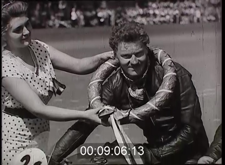 Kilenc ország részvételével népes mezőny indul a Magyar Nagydíjért a 350 köbcentiméteres motorok kategóriájában. Százezer néző előtt huszonöt körön át küzdenek egymással a versenyzők a városligeti versenypályán. A 31-es rajtszámú csehszlovák Helikar már az első körben élre tör. Helikar előnyét egyre fokozza. Mögötte a 80-as lengyel Kanas és a 23-as magyar Reisz. A 110 km hosszú körtávon Jawa gépén a csehszlovák Helikar fut be elsőnek. Második a lengyel Kanas, harmadik a magyar Cserkuti. Az oldalkocsis gépek tizenötkörös versenyében nyolc pár indul. A 87-es számú Neusser-Erlich (sic!) nyugatnémet pár vezet. Utána a másik nyugatnémet pár, majd a Domsa-Villányi magyar kettős. Motorhiba miatt a Poehler-Fluhr (?) nyugatnémet pár kiesett a küzdelemből. Neusserék fölényesen vezetnek. Mögöttük a 61-es Domsa-Villányi kettős és a 64-es Gódy-Börzsei pár. A versenyt fölényesen a nyugatnémet páros nyerte a magyar Domsáék előtt.