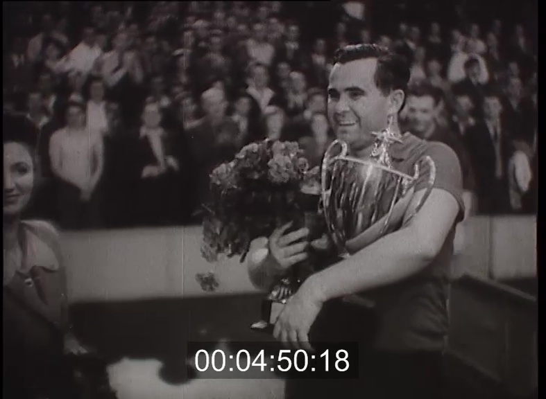 Huszonöt éve forgatja a kezében az apró ütőt és ezalatt több száz versenyt, közöttük kilenc világbajnokságot és huszonhét magyar bajnokságot nyert Sidó Ferenc. Stockholm, London, Budapest, Belgrád, Prága, Bukarest és még sok-sok város nagy versenyeinek páratlan sikersorozatára emlékeztet a díjak megszámlálhatatlan sokasága. Az indiai világbajnokság gyönyörű díjai és a legújabb nagy győzelem, az ez évi angol nemzetközi bajnokság aranyérme. A legnagyobb sikert az 1953. évi bukaresti világbajnokságon érte el Sidő Ferenc: három számban lett első, veretlenül. A férfi párosban Kócziánnal együtt harcolta ki a győzelmet. Vegyespárosban a román Roseanuval nyert világbajnokságot. Az egyesben pedig harmadik világbajnokságát szerezte meg Andreadis legyőzésével. Ez a siker páratlan az asztalitenisz-versenyek történetében. És a nagy győzelmek emlékei között a jövő bajnoka, a tízhónapos Ferkó játszadozik a kis fehér labdával, apró ütőivel.