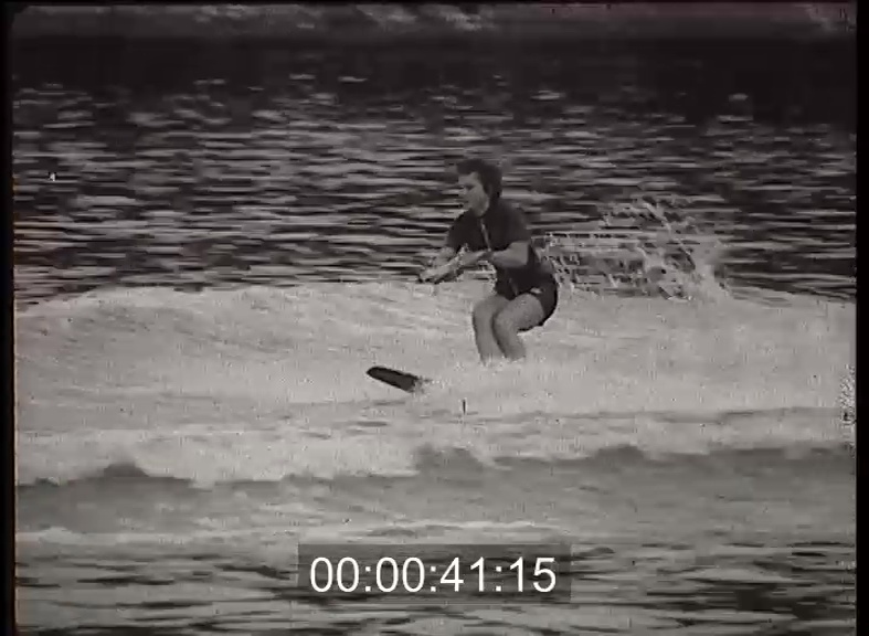 Ausztria. A bécsi téli Duna-kikötőben rendezték meg a vízisí Európa-bajnokságot. A női akrobatikus futamokat látjuk. Ebben a számban az olasz Castelvetri nyert Európa-bajnokságot. Az ugrószámokban két ugrás összesített eredménye dönti el a versenyt. Ha az ugró egyszer bukott, még két kísérletet tehet. A győzelmet az olasz Zaccardi 35 méter 75 cm-es ugrással nyerte. A vízisiklásban az osztrák Rauchenwald szerepelt a legjobban.