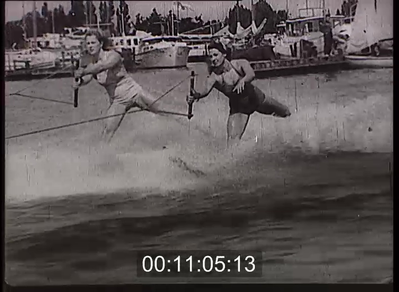 Elhangzó szöveg: Látványos bemutatóval kezdődött az osztrák vízisí bajnokság. A női verseny győztese Erika Feltner.