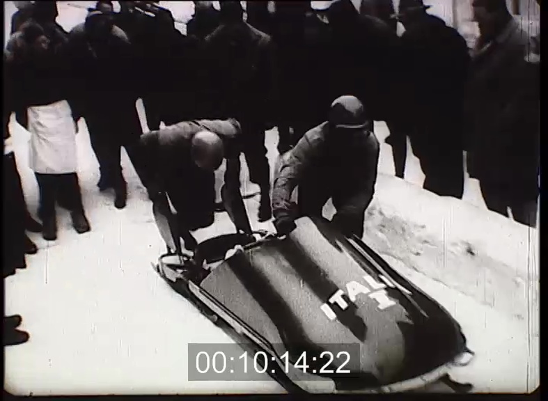 A kettősbobok világbajnoki futama a garmisch-partenkircheni olimpiai pályán. A tizenkilenc kanyaros, 2200 méter hosszú pályán a sebesség eléri a 100 km-t is. A versenyzők nagy szerencséjére még ilyen iram mellett is veszélytelenek voltak a bukások. A kétszeres világbajnok olasz Monti-Guzzi (sic!) [Helyesen: Rinaldo Ruatti és Enrico de Lorenzo győzött] pár volt a leggyorsabb, emellett a kanyarvételük is a legmerészebb. Az olasz kettős biztosan szerezte meg a győzelmet.