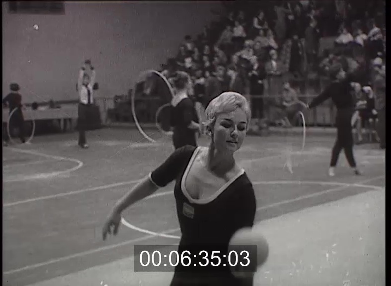 Balett vagy akrobatika? Mozgásművészet vagy sport? A szakemberek évekig vitatkoztak, amíg a művészi torna jogot nyert a versenysportok között. A magyar művészi tornásznők eddigi szép eredményeit igazolja, hogy Budapesten rendezték meg az első nemzetközi versenyt tíz ország huszonnyolc tornásznőjének részvételével. A magyar Szabó Orsolya szabadgyakorlatát látjuk. Itt is így pontoznak, mint a szertorna versenyen. A szovjet tornásznők a gyakorlatok kivitelezésében, anyagerősségben kiemelkedtek a mezőnyből. Tatjana Kravcsenko a második helyet szerezte meg. A harmadik helyezett bolgár Traslieva válogatott szertornász is. Ez mozgásán is látszik: nagyon biztos és lendületes a gyakorlata. Szépség, lendület, akrobatikus mozgás, mindezt együtt a győztes szovjet Ludmilla Szavinkova karikagyakorlatában láttuk.