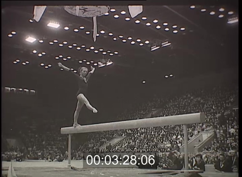 Szovjet-japán tornaviadal Moszkvában. A világ két legeredményesebb versenyegyüttese ebben a sportágban. Az olimpiákon mindig ez a két csapat vetélkedett a győzelemért. A tokiói olimpia után mindkét csapatban sok fiatal kapott helyet. A női talajon Zinaida Druzsina mutatott be szép gyakorlatot. A gerendán tartalmas, gondosan kivitelezett gyakorlatával a japán Furujama 9,7 pontot szerzett. Az összetettben a mindössze 15 éves leningrádi Krucsinszkaja bizonyult legjobbnak, megelőzve a sokéves versenytapasztalattal rendelkező neves versenyzőket. Gerendagyakorlatára 9,9 pontot kapott. A férfi talaj már évek óta japánok kiemelkedő száma. A moszkvai versenyen is ők bizonyultak legjobbnak. Korláton a budapesti Universiadén is sikerrel szerepelt Arkajev szerezte a legtöbb pontot. A gyűrűn a szovjet Leontyev mutatott be színvonalas gyakorlatot. A nyújtó ismét a japánok száma volt. Most éppen Nakajama lendületes forgássorozatát látjuk. A pontverseny végig szoros volt, és az elsőséget a szovjet Deomidov lólengése döntötte el, amivel a férfi egyéni összetett verseny győztese is lett. Ezekben a hónapokban, a téli időszakban, Európa csarnokaiban sorra rendezik a nemzetközi tornaversenyeket. A világ legjobb tornászai nemcsak jól felkészül gyakorlatokkal, hanem kecses mozgással és bájjal is igyekeznek megpuhítani a szigorú pontozókat. De az eredményes tornázáshoz kiváló tornaszerekre is szükség van. Ilyeneket készít a magyar sportszergyártás. A Budapesti Sportszergyárban hosszú hónapokon keresztül szárított nemes fából készülnek ezek a szerek. A többi már a versenyzőkön múlik.