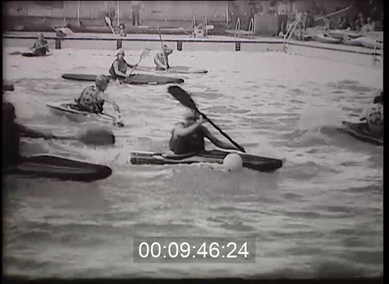 A labda útját most kisérjük a víz felett. Törvényszerű, hogy előbb-utóbb ki kellett találni a kajakpólót is. Ez a sportág nem szerepel a moszkvai olimpia műsorán, sőt rohamos elterjedésére sem kell túlzottan számítani. Tehetségek sora ugyan még akad, de a szerelés az kissé költséges. Pedig igazán változatos, szép ez a játék is. Jó esetben egyetlen lendülettel felnyársalhatjuk az ellenfelet, a labdáért vívott harcban, pedig kézzel, lapáttal, kajakkal vívhatunk. A gólt itt a medence két oldalán belógatott palánkok eltalálása jelzi.