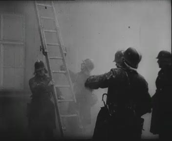 Elhangzó szöveg: A Légoltalmi Liga 60 órás tanfolyamain sajátítják el a tennivalókat a lakóházak őrségparancsnokainak oktatói. Gyújtóbomba oltása.