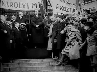 A Tanácsok Országos gyűlésének megnyitása a Városi Színházban 1919. június 14-én - Böhm hadsereg-főparancsnok egy kérelmező proletárasszonnyal beszélget - Kun Béla és Bokányi az ülésről távozóban - Szamuely elvtárs - Megindulnak az automobilok