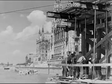 Még javítják az ostrom alatt megrongált Százados úti művésztelepet, de alkotóművészeink máris nagy lendülettel dolgoznak művészi álmaiknak megvalósításán. Mikus Sándor megrongált műterme előtt javítja "Mosakodó nő" című sikerült szobrát. Kallós Ede "Háry János" című kúttervén dolgozik. Soproni Stöckert Károly "Az üldözött" című szobrát mintázza. Medgyessy Ferenc több alkotáson is dolgozik, közöttük a "Honfoglaló" című lovas szobron. Ungvári Lajosnak is több műve megsérült. Most az "Marokszedőlány" című szobrát javítja.