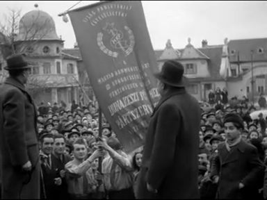 A Istvántelki Főműhely. Vagonokat állítanak össze munkások. Az elkészült vagonra feliratot helyeznek: "10000 kocsi az Istvántelki Főműhelyből". Tízezredik helyreállított vasúti kocsi ünnepélyes átadása. Tildy Zoltán és kísérete érkezik a műhelybe, majd kezet fog a munkásokkal. Varga Lajos MÁV elnök beszél. Névtelen Munkás emlékmű leleplezése. Tildy Zoltán beszél. Gerő Ernő beszél.