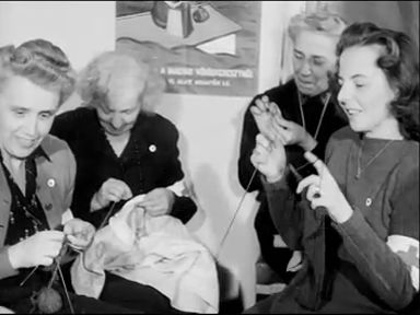 A Nemzeti Segély teherautója gördül be egy udvarra. Ládákban pakolják ki a tojásokat. Sorban állók; a tojások kiosztása.