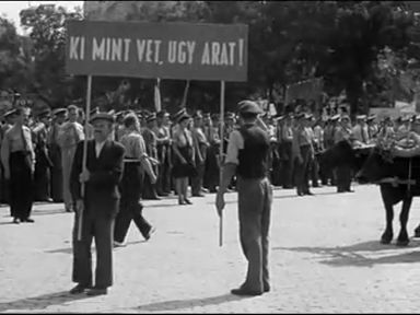 A Szent István bazilika épülete. A Szent Jobb ereklyét hozzák le a templom lépcsőjén. Katonai díszegység díszlépésben. Nézelődők egy erkélyen. Mindszenthy hercegprímás áldást oszt. Dinnyés Lajos, Ortutay Gyula a menetben. A SZEB küldöttei. Münnich Ferenc a vendégek között. A Hősök tere ünneplőkkel. Szent István napi munkásmajális: táncoló kislány a színpadon. Ökölvívó mérkőzés a Ligetben. Bohócok. Táncoló fiatalok. Körhinta.