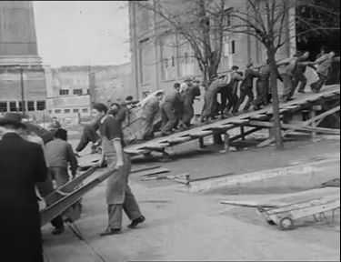 Ünnepség a Városházán. Népviseletbe öltözött lányok. Házi Árpád alispán beszél. Gerő Ernő, Rajk László és felesége az ünnepségen. Dinnyés Lajos, majd Gerő Ernő beszél. Taps. Néptánc.