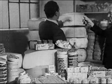 Teherautó érkezik áruval megrakodva. Élelmiszerraktárak telve élelmiszerrel, hússal. Hentesek egy húsraktárban. Munkásasszonyok egy élelmiszerüzemben. Rekeszek tojásokkal. Vagonnyi burgonya. Húsfeldolgozó üzemi képek.
