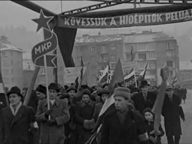 Badacsony Balatonboglár felől. A boglári emlékmű (letakarva) körülötte összegyűlt emberek. A szobor leleplezése. Boldizsár Iván államtitkár beszél. Koszorúzás. Tömpe István alispán a meghívottak között. A meghaltak, eltűntek nevei táblára vésve.