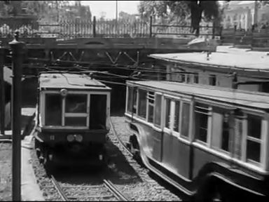 A 66-os villamos érkezik, járókelők az úton. Busz és villamos az út szélén. Síneket fektető, köveket talicskázó munkások a körúton. Locsoló autó, majd úthenger. A síneket hegesztő munkás. Az új pályán közlekedő 6-os villamos.
