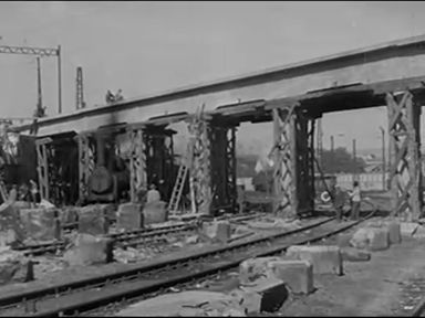 A Műegyetem bejárata (külső). Betört ablakok. Huxley megtekinti az épület állapotát. Bontási munkálatok.