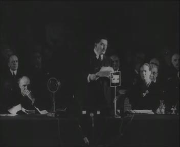 7. Franciaország. Harc a békegyűlésen! Herriot, volt francia miniszterelnök beszél a párizsi Nemzetközi Leszerelési Kongresszuson. (Paramount felv.) / 7/a. Az antipacifista ellenpárt által megzavart gyülésen a külföldi kiküldöttek szóhoz sem jutottak.