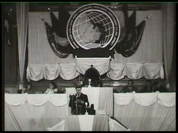 A város még visszhangozza nyolcvannégy nemzet fiainak a Világifjúsági Találkozón tett békefogadalmát. A világ békéért küzdő, a békéért minden áldozatra kész ifjúsága ismét seregszemlére gyűlt össze a Parlamentben. A világ haladó ifjúságának legjobbjai gyülekeztek itt, hogy határozzanak a béke megvédése ügyében. Megjelentek a hős lenini Komszomol küldöttei. Itt van köztük Mareszjev ezredes, a legendás hírű, igaz ember. Iván Kozsedub repülő alezredes, a Szovjetunió háromszoros hőse, Natalja Karaljeva kolhozmunkásnő, a szocialista munka hőse. Itt vannak a grammoszi hősök, a görög ifjúság képviselői, szabad Kína harcos ifjúságának küldöttei, Franciaország sztrájkokban edződött ifjúsága, a gyarmati fiatalok, és a szabad népi demokráciák ifjúsága. A kongresszus megnyitása előtt a Parlament folyosóin a világ haladó ifjúmunkásai, parasztfiataljai és diákjai cserélik ki tapasztalataikat, vitatják meg a békéért folytatott harc elkövetkező feladatait. Kezdetét veszi a kongresszus. Guy de Boisson, a Demokratikus Ifjúsági Világszövetség elnökének megnyitó szavai után Farkas Mihály üdvözli a Kongresszust. [Farkas Mihály]: "A második világháború után kialakult békemozgalom a harc mozgalma. Az Ifjúsági Világtalálkozó harcos, lelkes és elszánt légköre is mutatja, hogy a mai ifjúság kész tettekkel is küzdeni a békéért, és el van szánva arra, hogy minden nehézséggel szembeszáll, és minden nehézséget leküzd a béke biztosításának érdekében. Mi nem a békéért könyörgők, hanem a békéért harcolók mozgalmát építjük. Ilyen békemozgalmat épít a világ demokratikus ifjúsága is. Ennek a biztosítéka, hogy az ifjúság békemozgalmának élén ott halad Lenin, Sztálin hős ifjúsága, a dicső Komszomol. Éljen a népek békéért folyó harcának nagy és bölcs, szeretett vezére, a nagy Sztálin!" /vastaps, "Lenin! Sztálin!"/ A béketábor vezére, a Szovjetunió s bölcs vezetője Sztálin iránti forró szeretetben, lelkes éljenzésben elemi erővel nyilatkozott meg az eggyé forrott ifjúság ereje. A Magyar Ifjúság Népi Szövetsége nevében Nonn György üdvözli a Kongresszust. [Nonn György]: "Világszerte szervezkednek a sötét erők az ifjúság ellen. A gyarmatokon, Görögországban, Spanyolországban, Jugoszláviában börtönbe, halálba küldik azokat a fiatalokat, akik a Demokratikus Ifjúsági Világszövetség programját, a mi programunkat vallják, és annak szellemében cselekszenek. Ez a kongresszus kell, hogy megszabja a Demokratikus Ifjúsági Világszövetségben tömörült 60 millió fiatalnak célkitűzéseit az elkövetkezendő esztendőkre." /taps/ A magyar úttörők is üdvözlik a Kongresszust. [Úttörő kislány]: "Mi szabad hazában, népünk és példaképünk, Rákosi pajtás /taps/ gondoskodása folytán szép és vidám életet élünk, de tudjuk a kötelességünket. Valamennyi magyar úttörő nevében ígérem és fogadom a világ haladó ifjúságának, hogy a békéért és szebb jövőért jó tanulásunkkal mi is harcolunk, ahogyan azt a szovjet úttörő pajtásainktól tanultuk." /taps/ Jiri Hronek, az imperializmus ellen harcoló nemzetközi újságíró szövetség főtitkára köszönti a kongresszust. A békéért folytatott harcból a haladó újságírók kiveszik részüket. Guy de Boysson elnöki referátumában beszámol a Demokratikus Ifjúsági Világszövetség eddigi munkájáról, eredményéről, majd a további feladatokról beszél. (francia nyelven, aszinkron) A Világszövetség tevékenységének központjában a béke védelme áll. A fiatal dolgozók jogaiért folyó küzdelmet össze kell kapcsolni a békéért folyó harccal. Az egész világ ifjúságának meg kell ismernie a Szovjetuniónak, a szocializmus országának egyedülálló eredményeit és a népi demokráciák fejlődését. Meg kell erősíteni az ifjúság egységét a nemzetközi szolidaritás szellemében. Az ifjúság kész harcolni a békéért és tudja, hogy ebben a küzdelemben a Szovjetunió jár az élen. /vastaps, "Sztálin!"/ Határtalan az a szeretet, amivel az ifjúság Mihajlovnak, a Komszomol főtitkárának beszámolóját várja. Szavai útmutatást jelentenek a világ ifjúságának. /vastaps, "Sztálin!"/ (orosz nyelven, aszinkron) A béke és a népek közti barátság leghűbb, legőszintébb és legkövetkezetesebb harcosa a Szovjetunió. A nemzetközi életben két erő működik: a Szovjetunió vezette demokratikus erők, és az Egyesült Államok vezette antidemokratikus erők. Minden olyan szóbeszéd, hogy meg lehet maradni a két erőn kívül, hazugság és becsapás. A jugoszláv kormány, amely elárulta a demokrácia ügyét, nemcsak a Szovjetunió ellensége, hanem ellenfele az egész demokratikus frontnak. Eljön majd a pillanat, amikor Tito és Rankovics véres bandája felelni fog súlyos bűntetteiért. Az imperializmus pusztítja az emberiséget, mint egy rettenetes járvány, undorító fekély. Csak az ellene való éles harcban lehet megvédeni a békét, a demokráciát, a népek nemzeti függetlenségét. Minden becsületes embernek, minden fiatalnak kötelessége, hogy szeresse hazáját, hű legyen népéhez és mindent megtegyen, hogy népe szabad és boldog legyen. A Szovjetunió fiatalsága minden erejével azon lesz, hogy az ifjúság demokratikus mozgalmának egységét megerősítse, hogy támogasson minden olyan kezdeményezést, amely a békéért, a demokráciáért, a népek nemzeti függetlenségéért és az ifjúság jobb jövőjéért folytatott harc érdekét szolgálja. /vastaps, "Sztálin!"/ A népi demokráciák közül Dimitrov Bulgáriájának nevében Jero Grozev szól. George Florescu a román ifjúság életéről és munkájáról számol be, a magyar ifjúság nevében Hollós Ervin beszél. Egy a jellege valamennyi beszámolónak. A ter